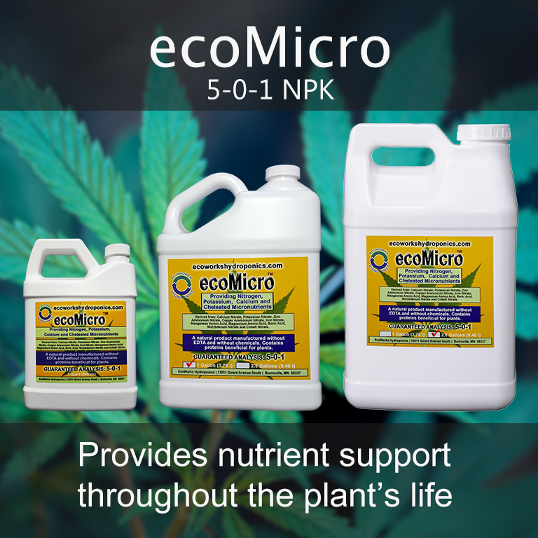 ecoMicro provides the essential secondary nutrients for plant growth. An NPK of 5-0-1 is misleading in that it provides many nutrients necessary for all stages of plant growth that are not provided in the NPK information.